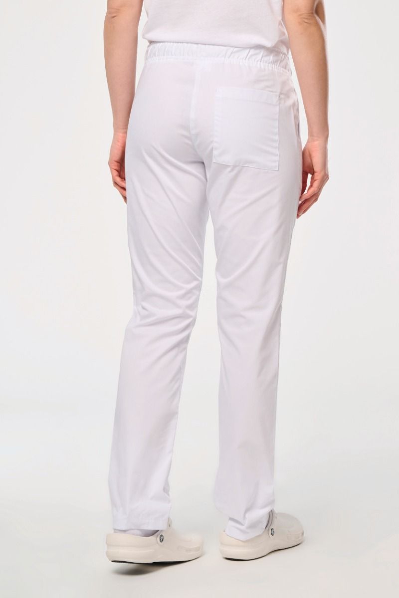| Omschrijving | 65% polyester / 35% katoen. Twillstof. Norm ISO 15797 Industrieel wassen 75 °C (20 wasbeurten). 2 Italiaanse zijzakken + 1 opgezette achterzak met verstevigingen. Elastische tailleband met aanrijgkoordjes aan de binnenkant. Tear-away merklabel. |