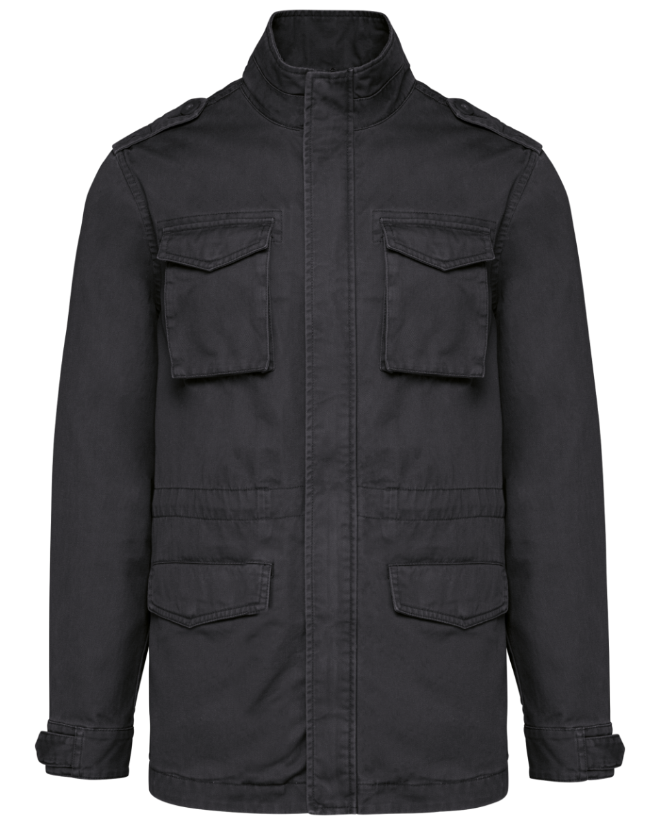 | Omschrijving | 100% katoen. Twillconstructie. Rechte snit. Gewassen kledingstuk. Deze techniek maakt dat er kleurverschillen kunnen zijn tussen de producten en elk stuk dus uniek is. Ritssluiting met een metalen schuiver en trekker in de hoofdstof, en een knooplijst met onzichtbare drukknopen in het midden vooraan. Binnenin afgewerkt met een oplegsel. Vier buitenzakken met een drukknoop. Pols met een sierlijst, samengehouden met een drukknoop. Verstelbare aanrijgkoordjes in de tailleband, met stopper met lederlook in het kledingstuk. Schouderlijst met knoop. Binnenzak met klittenband. Halve maan voor eenvoudige personalisatie en ophanglus binnenin. |