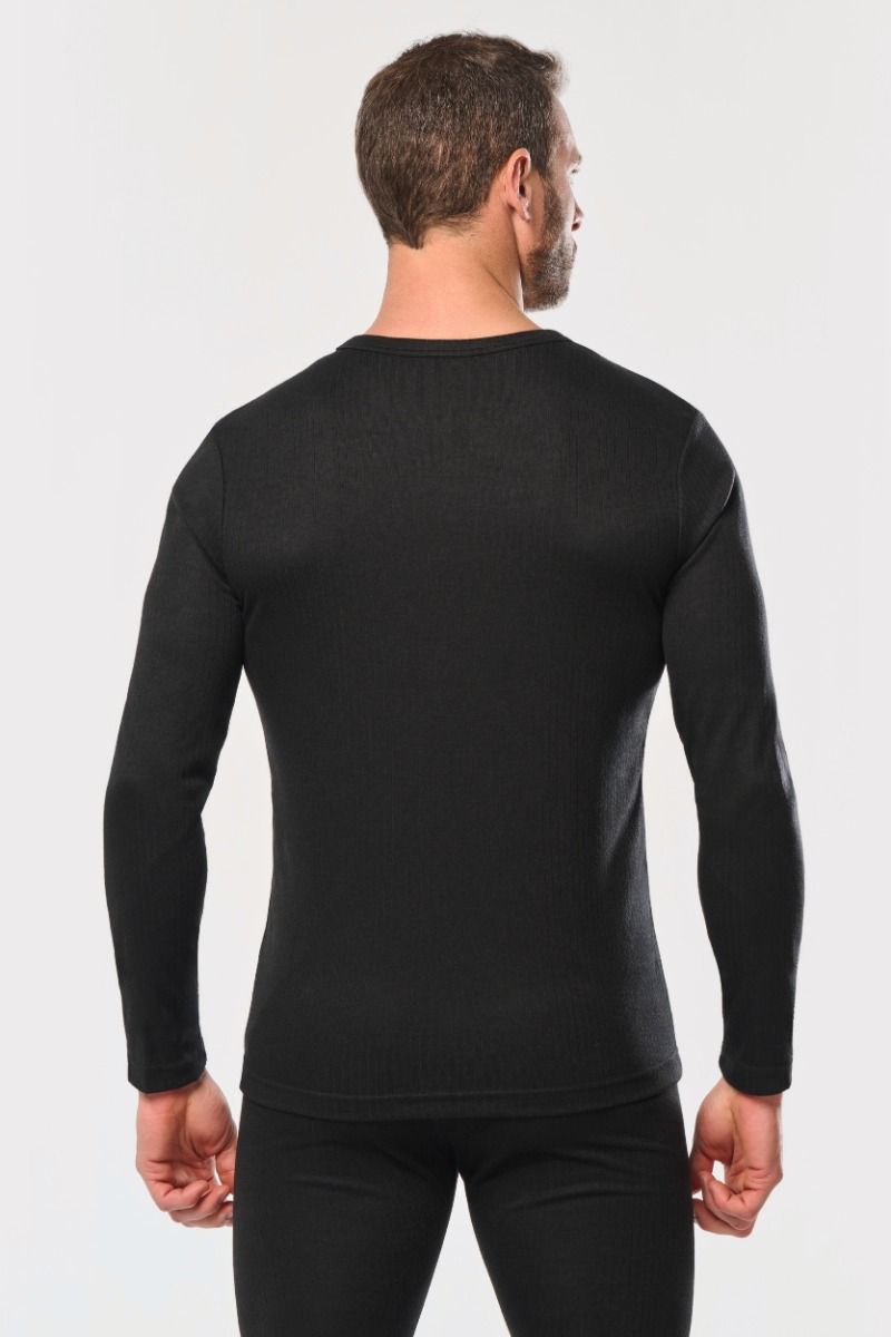 | Omschrijving | 80% polyester / 20% viscose. Warme onderkleding. Ronde hals. Afwerking met dubbele stiksels aan de mouwuiteinden en onderaan. |