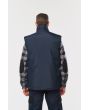| Omschrijving | 100 % polyester. Buitenkant: 100% oxford polyester met PVC inductie. Gewatteerde voering met 100% polyesterwatten. Ritssluiting verborgen onder een lijst met drukknopen. 4 buitenzakken (3 met overslag en 1 met rits). Elastische armsgaten en regelbaar met een stopper. 2 binnenzakken (1 met rits en 1 gsmzakje). Drukkersrits. Gemiddeld gewicht in maat L: 916 g. |